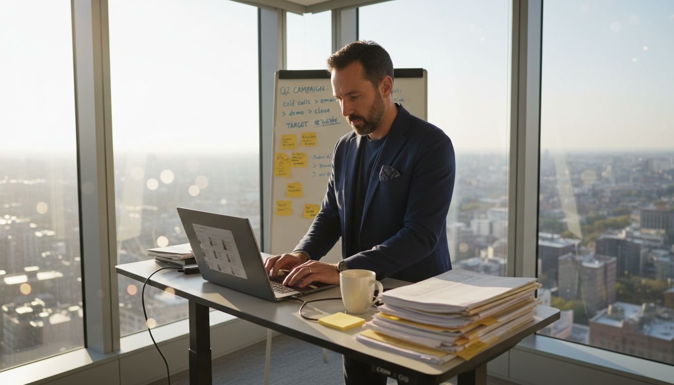 Sales professional using automation tools at workspace